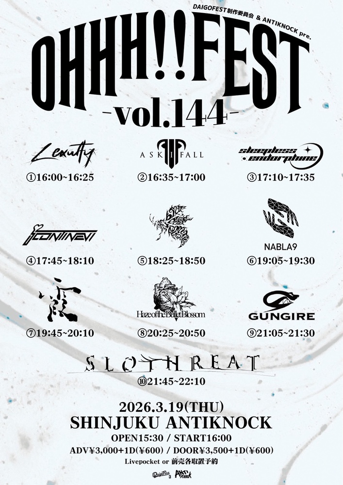 『Purple haze vol.7』TIME TABLE解禁 NEWS Live info. Haze of the Bullet Blossom【OFFICIAL WEB SITE】 2026/01/19 20:00 フォロー 2026.2/2(Mon.) at 新宿ANTIKNOCK ANTIKNOCK pre. 【Purple haze vol.7】 TIME TABLE解禁 詳細は、SCHEDULEより。 URLをコピーする 報告する